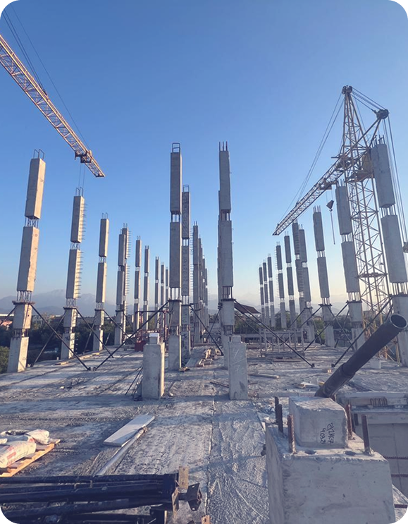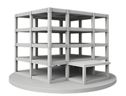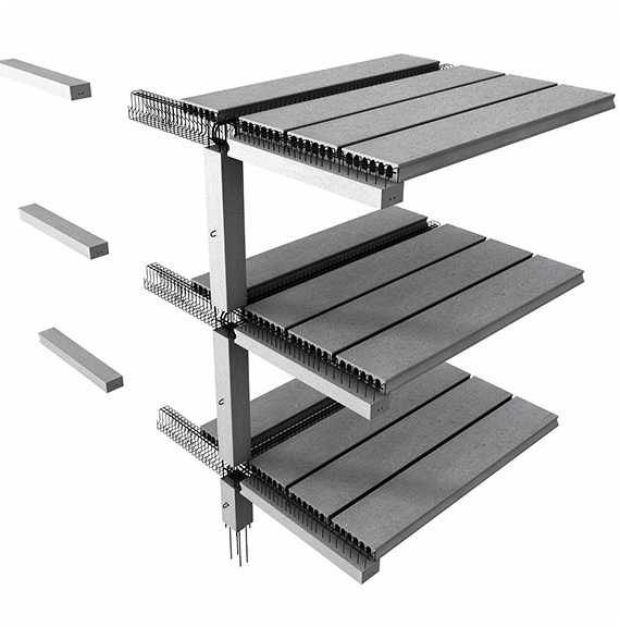 В состав сборно — монолитного каркаса входят: колонны, ригели, плиты перекрытия, диафрагмы жесткости, балконные плиты и лестничные марши. Также при необходимости возможно изготовление вентблоков, шахт лифтов, фундаментных чаш.